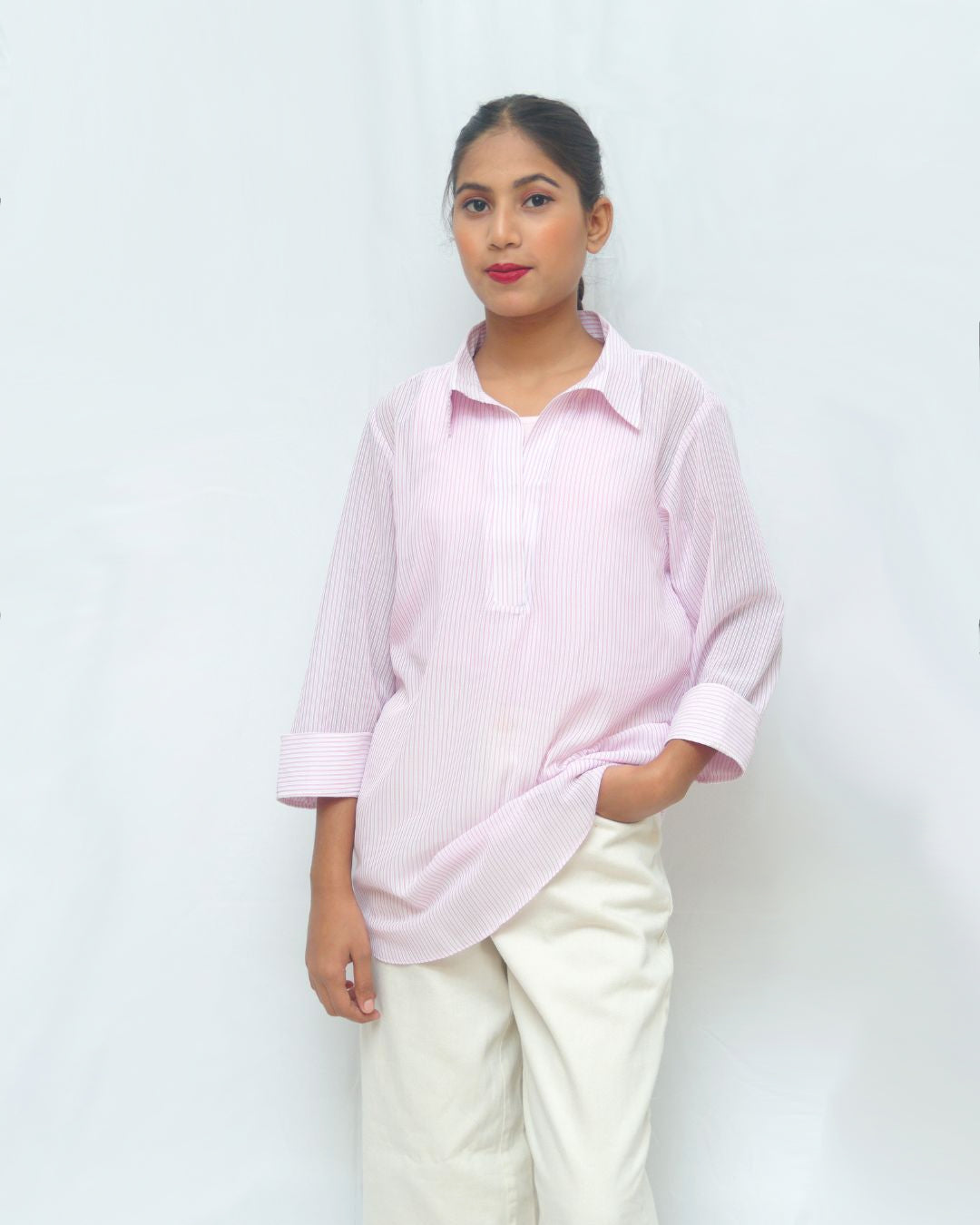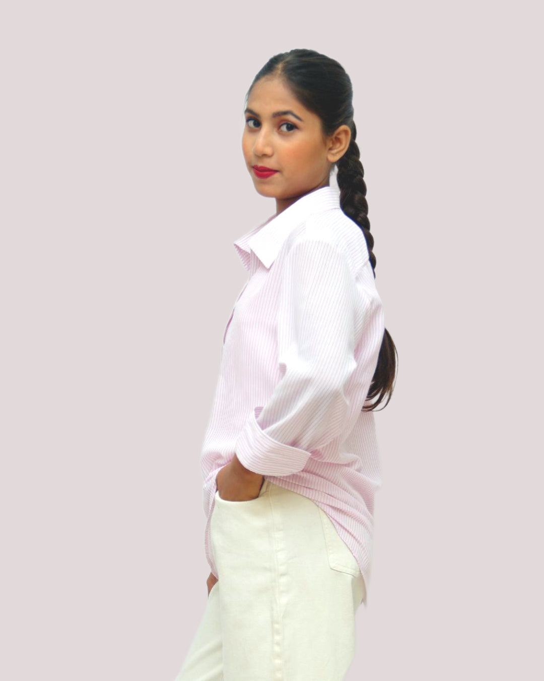 This striped shirt brings a fun twist to your casual wardrobe with its relaxed fit and breezy fabric. The playful V-neck collar adds just the right touch of flair while keeping things comfy and cool. Perfect for effortless style that’s as easygoing as you are.